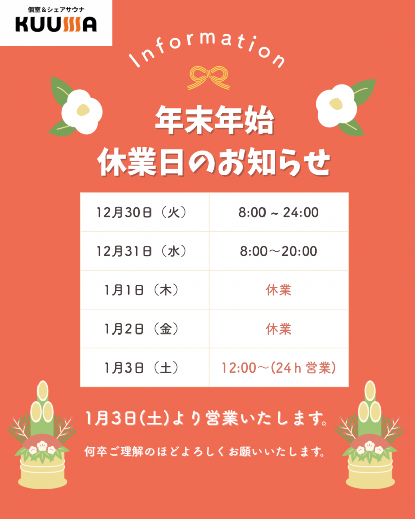 新年のスタートに合わせたこの期間は、一年で最もお得な購入タイミングとなっております♨️